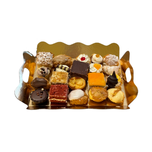 Bandeja de 500 gramos de pastelitos de bocado variados.