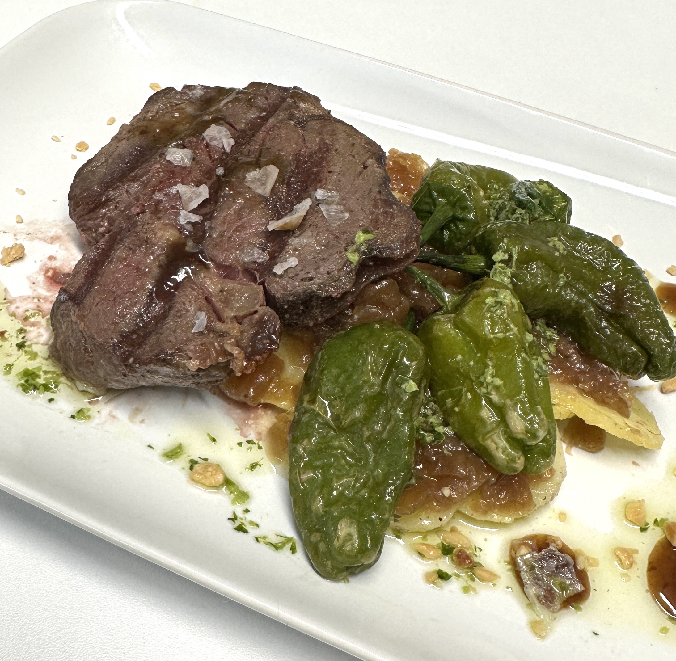 Solomillo a la Brasa con aroma de humo y Pimiento de Padrón (2 medallones)